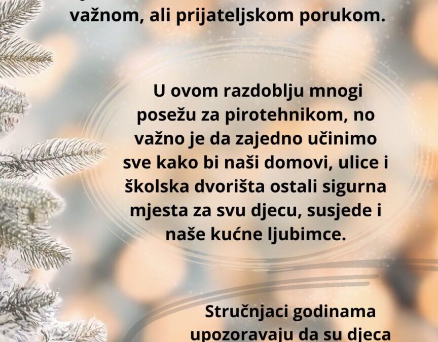 DRAGI RODITELJI I DRAGI UČENICI, Kako nam se približavaju blagdani – vrijeme radosti, druženja i obiteljskog zajedništva – želimo vam se obratiti s važnom, ali prijateljskom porukom. U ovom razdoblju mnogi posežu za pirotehnikom, no važno je da zajedno učinimo sve...