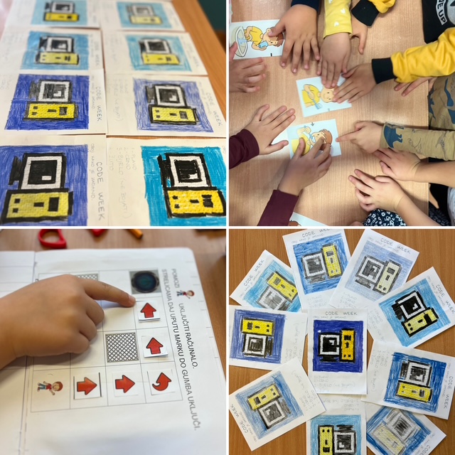 Bojali su pixel bojanke i otkrivali skrivene slike, rješavali labirinte, zaplesali kodirani ples, te kroz igru “Algoritmi nisu teški” naučili kako se svakodnevni postupci poput pranja zubi ili pripreme za školu mogu prikazati kao niz logičkih koraka.