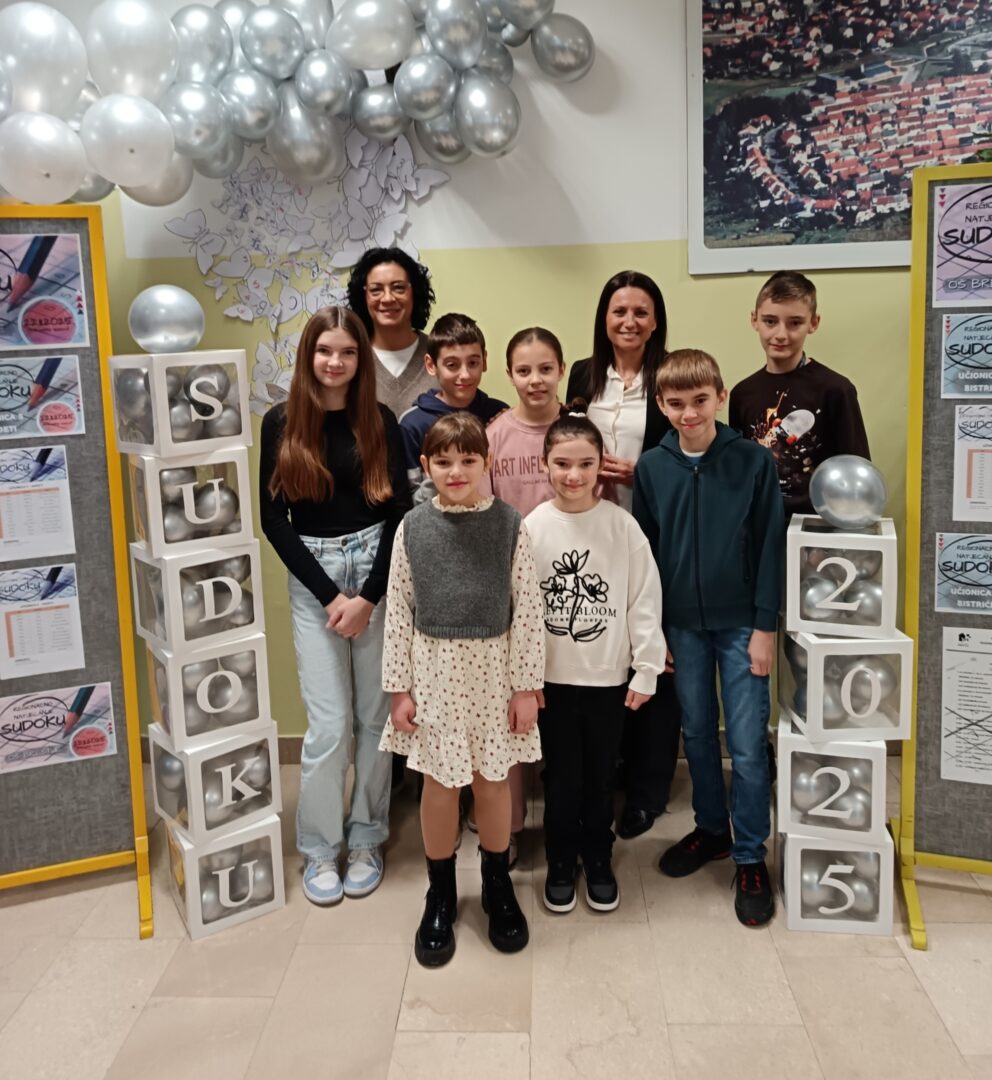 Ove godine regionalno sudoku natjecanje održalo se u našoj školi, 22.11.2025. godine. Na natjecanju su sudjelovali učenici osnovnih škola Grada Zagreba. Iz naše škole plasirali su se učenici viših i nižih razreda. U kategoriji BISTRIĆI natjecale su se učenice Sara Oroz (2.e), Rita Sandelić (3.e) i Marta Hrkać (4.b). U kategoriji KADETI natjecali su se učenici 6. razreda Fran Piknjač i Marin Sekovanić (6.a) te učenici 7. razreda Toni Panđa i Vita Boroš (7.c). Naše učenike pratili su i ponosni mentori, učiteljice matematike Vesna Vujević i Katarina Hrgović, učiteljica informatike Ana Kordić i učiteljice razredne nastave Lucija Jakešević i Vesna Dukić.